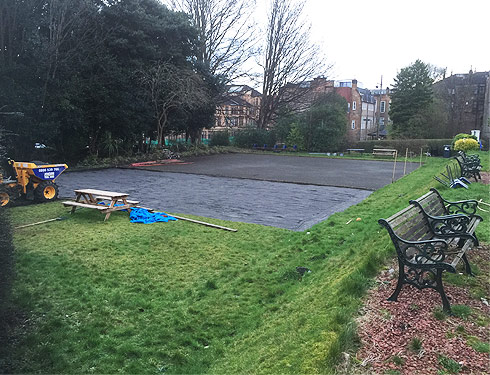 Boules park construction in Glasgow Westend