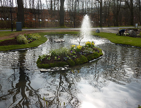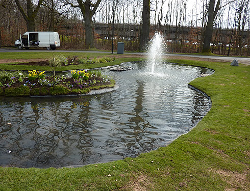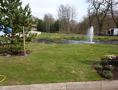 We successfully completed a pond with water feature and island